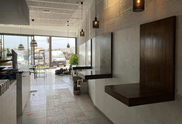 La estructura de madera en la fachada de Lajares combina la funcionalidad y la estética en armonía con el entorno natural de la localidad. El uso de madera no solo confiere un aspecto cálido y acogedor, sino que también resalta la sostenibilidad y la conexión con la naturaleza. La disposición en forma de L no solo añade un toque arquitectónico distintivo, sino que también maximiza la entrada de luz natural y la ventilación, contribuyendo a un ambiente interior luminoso y confortable. Esta elección estructural no solo cumple con los estándares de durabilidad y resistencia, sino que también se integra de manera elegante en la estética tradicional de Lajares, creando una fachada que refleja la identidad local y promueve un enfoque arquitectónico respetuoso con el medio ambiente.
